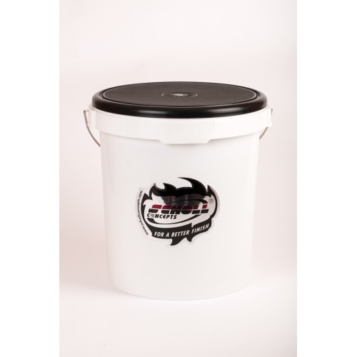 The Scholl Concepts Bucket with ScratchShield & Lid kit contains a tough and durable white plastic 20-litre capacity Scholl Concepts-branded ScratchShield Bucket, ScratchShield Bucket Filter and a sturdy Bucket Seat Lid.