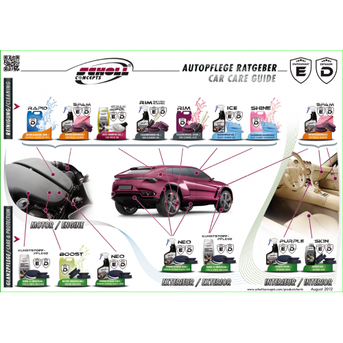 Car Care Guide: Product guide for care, cleaning and protection of interior and exterior with Scholl Concepts.