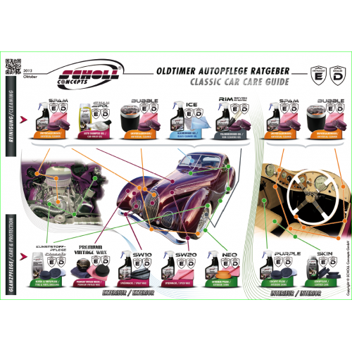 Classic Car Care Guide: Product guide for care, cleaning and protection of interior and exterior with Scholl Concepts.