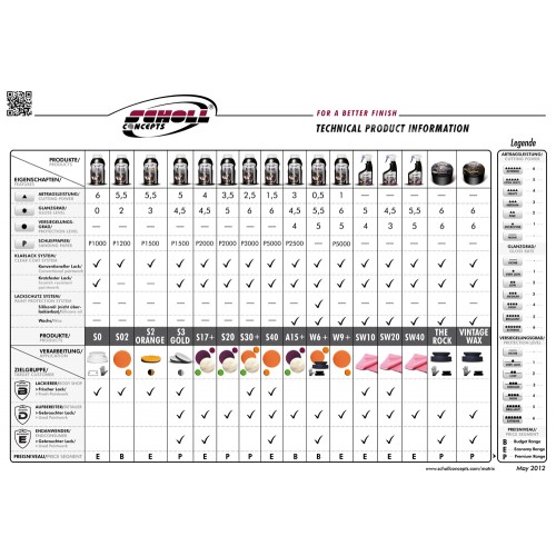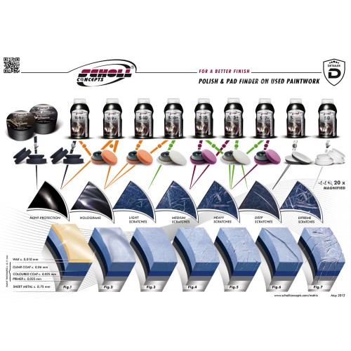 Scholl Concepts A3 posters are designed by Scholl Concepts to provide information and guidance on product choice, use and application. Brighten up your workshop, detailing studio, van, office or home with these helpful product matrix from Scholl Concepts.
