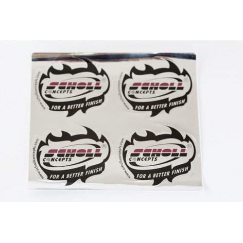 A set of four small Scholl Concepts metallic stickers. Ideal for your workshop, detailing studio, tool or equipment boxes, vehicles, etc.